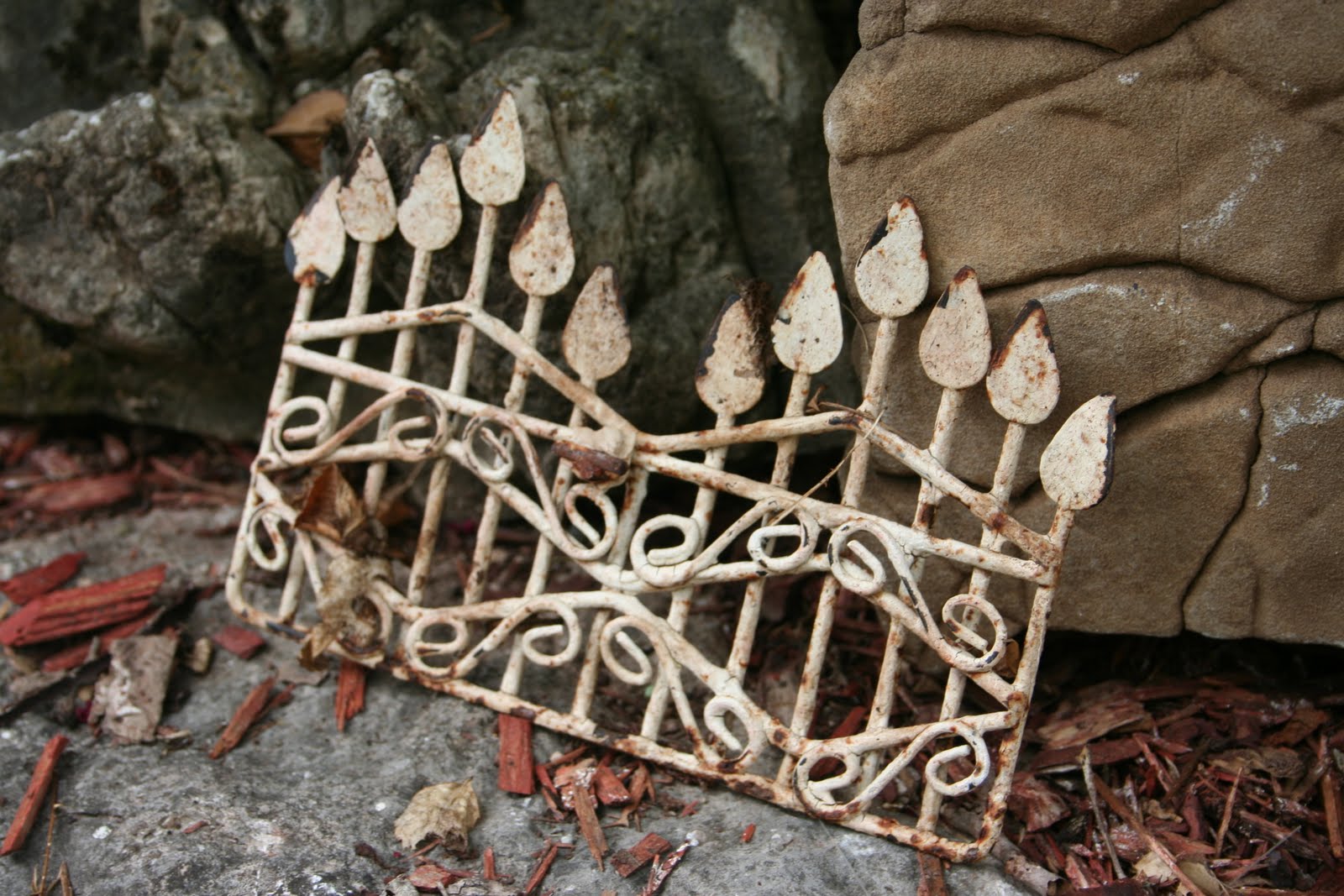This fence section was about 4-5" tall. I WANTED it so bad. It was hidden on the property side of their fence, underneath a plant. I seriously thought about taking it, as it was so weirdly located that I doubt the owner knew about it. It would have made a great fairy gate for Lily's garden (or just a cute piece somewhere). But I didn't take it. It's one of things that I wish I had done though. Now I'm just going to be in search of the impossible - a teeny tiny little gate.